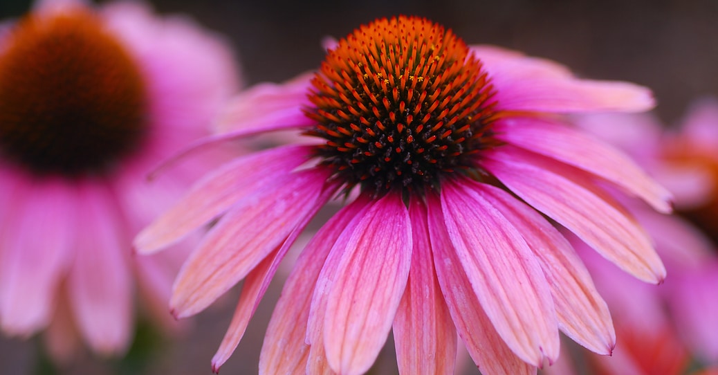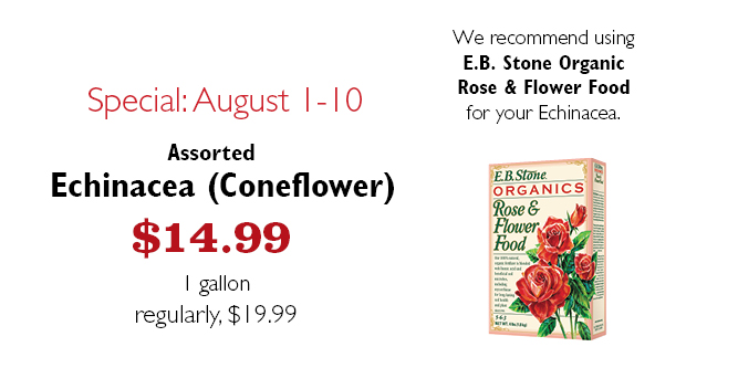Use Echinacea in beds for a mass effect, or at the back for added height. They are native to the prairies of North America and will tolerate most soils including poor soils. Echinacea comes from the Greek word Ekhinos meaning Hedgehog or Sea Urchin referring to the spiky center.