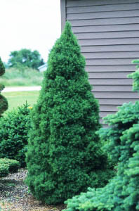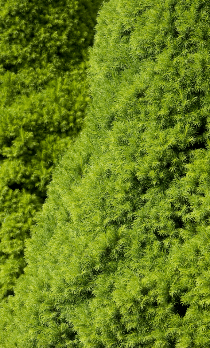 Dwarf Alberta Spruce’s green needles are soft to the touch, unlike some of their relatives that have sharp needles. Due to their slow growth habit they require very little maintenance besides feeding during the year and some light pruning in the spring if needed.