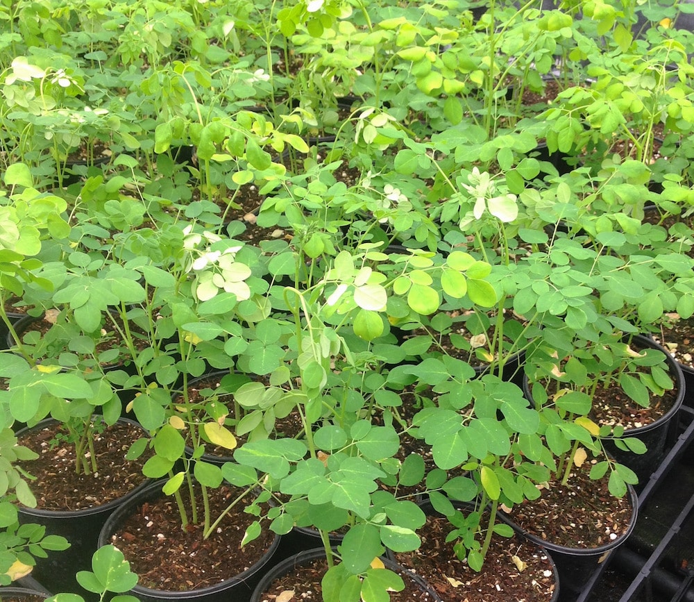 Moringa is also called “Miracle Tree” or “Drumstick Tree” or “Benzoil Tree.”This fast growing, drought tolerant tree is native to the foothill Himalayan areas of India, Pakistan and Bangladesh. It’s known for its long, slender seed pods and leaves that are eaten as vegetables. The leaves can be eaten raw in salads or smoothies, or cooked and used like spinach. Even when dried and powdered, the leaves retain their vitamins and minerals (Moringa is high in nutrients) and can be added to soups and other foods. The immature green seed pods can be prepared similar to green beans, or if mature, the seeds can be cooked like peas or nuts. Moringa prefers growing in sandy, well-drained soil, and planted in full sun.