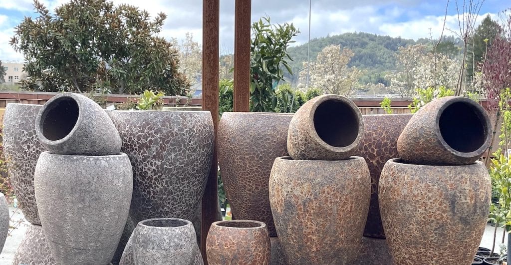 Sloat now carries several different extra-large statement pots! These planters are significantly larger than our other pottery and will make a dramatic impact in entryways, on decks or patios, on either side of a large gate, or even in commercial spaces. We carry a selection of statement pots at most Sloat locations except for our 3rd Ave., Pierce St., and Miller Ave. stores.