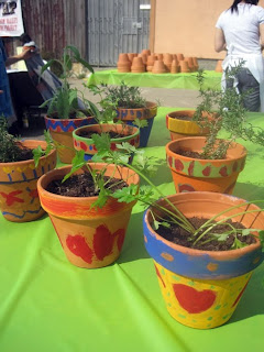 Pictures above are from an herb-planting fundraiser for the Visitacion Valley Neighborhood Block Party Library in late September. All funds raised went to support the new Visitacion Valley Library. Sloat donated the pots, soil and seeds — the kids had a great time painting and planting!!