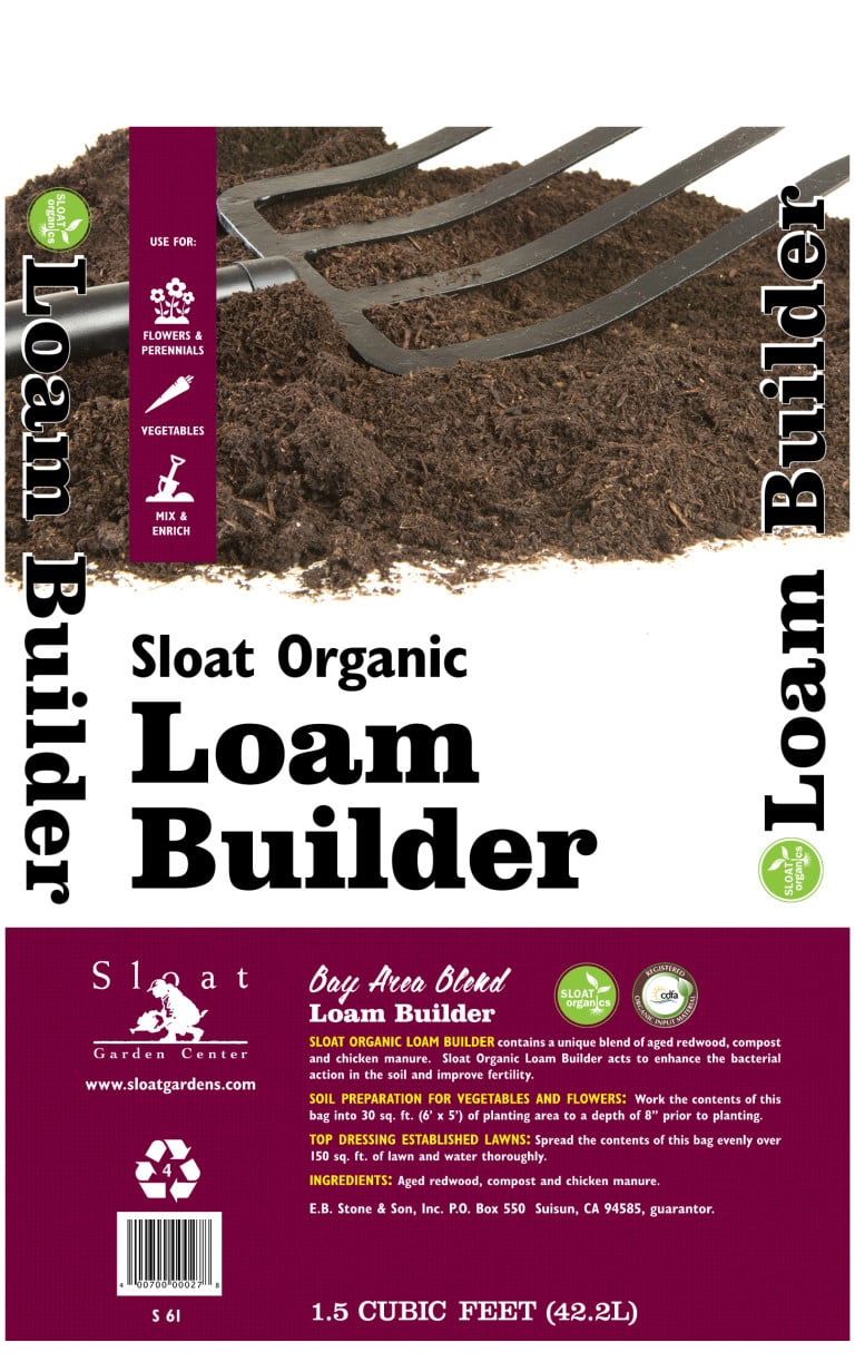 Sloat organic loam builder contains a unique blend of aged redwood, compost and chicken manure. Sloat Organic Loam Builder acts to enhance the bacterial action in the soil and improve fertility.